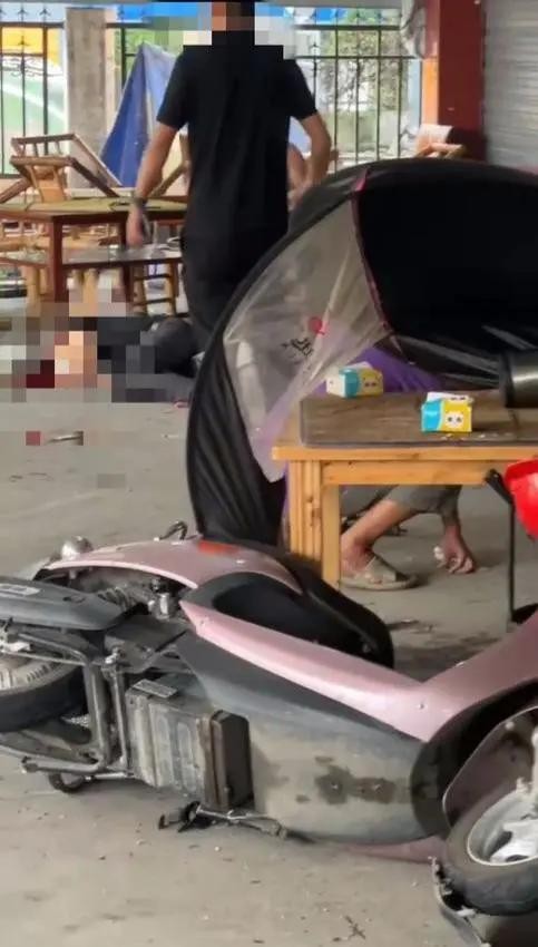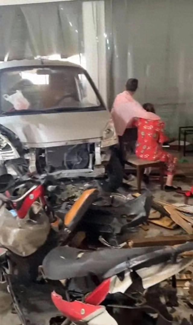 据目击者提供的现场视频显示,事故小货车停在麻将馆门面内,货车车头已经严重凹陷,现场的木质桌椅散落一地,有电动车倒在麻将馆前,有人躺在地上,地上有血迹。