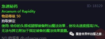 开放黑翼之巢以后,头、腿的附魔急速秘药(1%攻击速度)需求量大幅提升,价格也水涨船高,所以打算自己做一下看看是不是物有所值