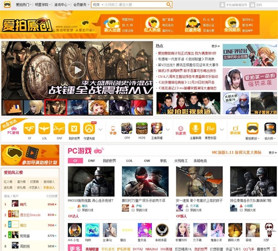 在当时,爱拍网与土豆、优酷、PPTV、酷6等视频网站主打生活搞笑与综艺电视剧的网站大相径庭,因为起步晚,争占这些方向流量的爱拍,显然是无法站足自己脚跟的,于是爱拍另辟蹊径,打造了一个主打游戏方向的视频平台。
