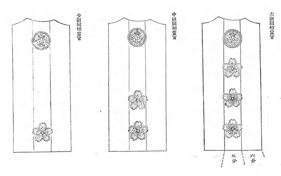 明治29年(1896年)礼衣为胸前14枚纽扣,明治37年(1904年)7月1日更改为胸前12枚纽扣。身穿礼衣时需要佩戴黑色领结。