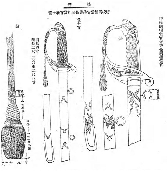 长剑就是海军佩剑。明治29年(1896年)规定的将官和军官长剑样式相同,但剑柄和剑鞘上的花纹不同。大正3年(1914年)规定统一了将官和军官的长剑花纹。