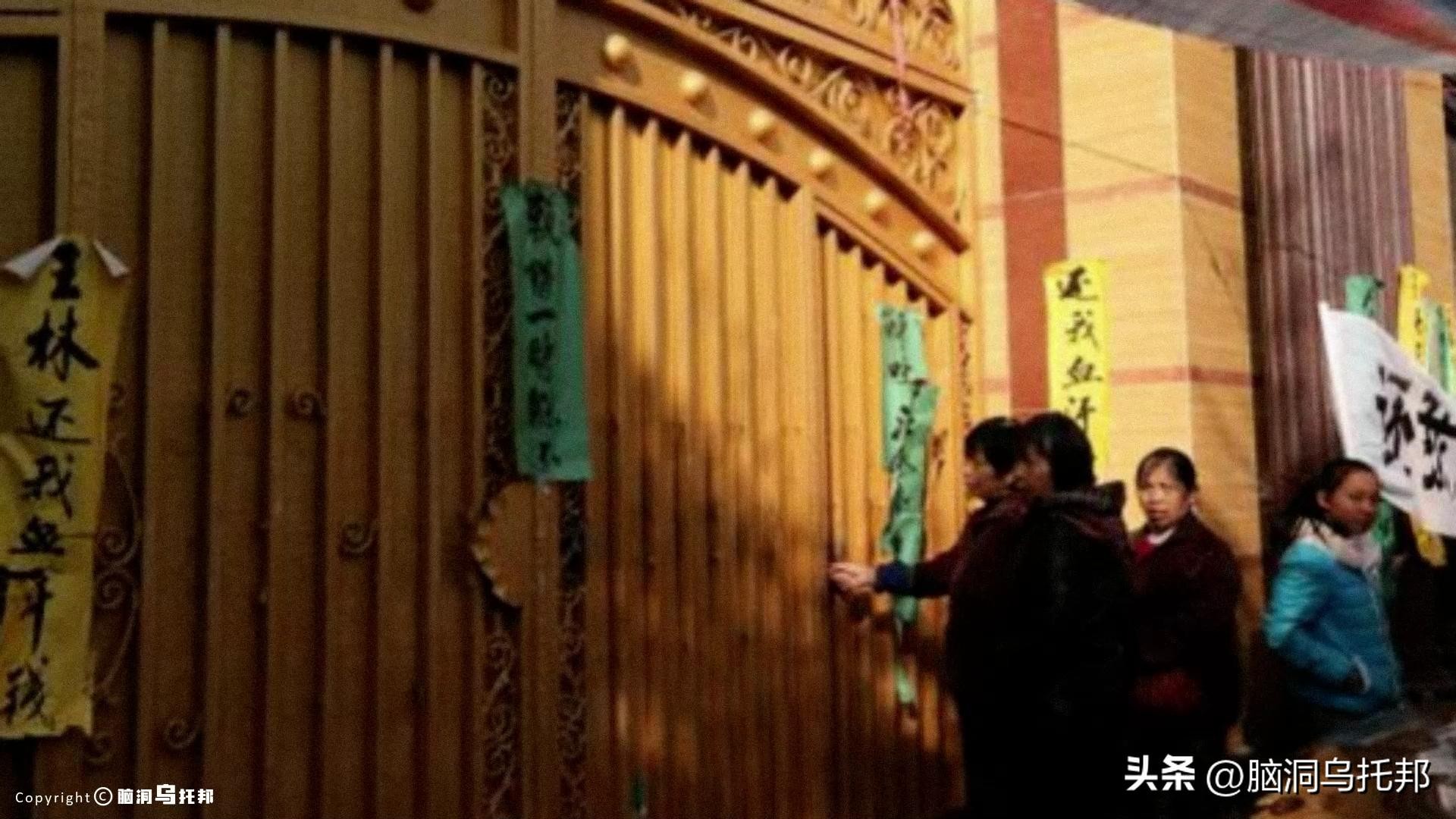 宅门上则被贴上了近百张讨债纸条,横幅上写着「王林骗子,欠债还钱」、「还我血汗钱,我们要吃饭」等字样。王林整整躲了6天,最后又通过化妆,巧妙逃了出来,再次回到香港。