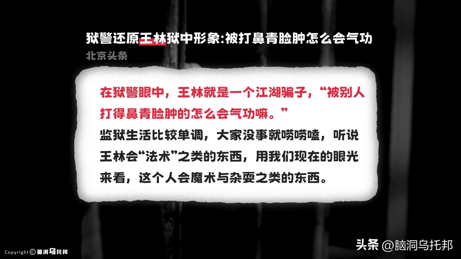不过《北京头条》采访了曾管教过王林的一位狱警,他的说法和王林的说法截然相反,他说王林在牢里经常因为说大话被揍得鼻青脸肿,也没有见识过王林有什么功夫,毕竟如果真有神功的话就不会被打了。