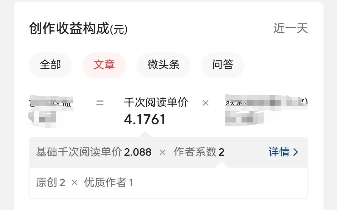 而头条文章千次阅读单价低的时候也有4块左右,高的时候达到了10块,相对微头条而言,这个单价就要高出很多。