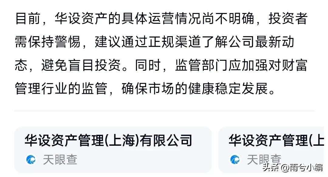 从2024年8月的失联到11月的维权潮,华设资产暴雷给投资者、监管者和行业敲响了警钟。高收益的背后是高风险,明星光环的掩饰是漏洞丛生。当财富管理行业的乱象接连暴露时,我们不禁要问:下一个“华设资产”会在哪里出现?而监管如何才能避免更多人陷入类似的投资深渊?答案,也许需要时间,但时间不等人,投资者的资金更不等人。