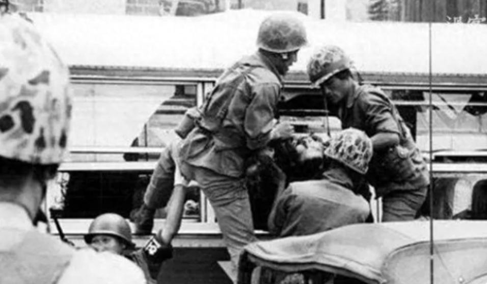 等到第二天正常军训的时候,对着士兵们喊趴下,而前来视察的领导们却没有这个意识。一片茫然之时,就倒在了血泊中。