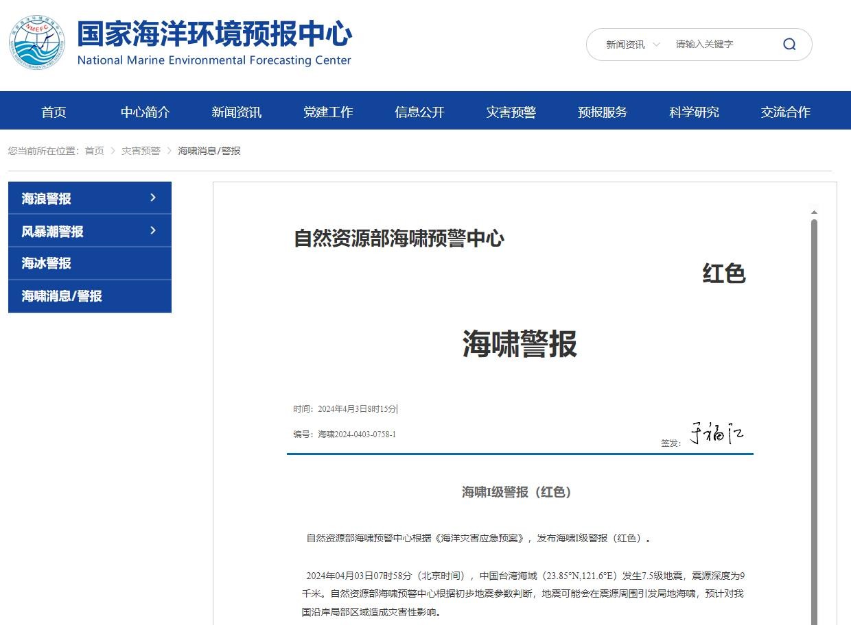 今年1-10月,我国国家海洋环境预报中心发布的海啸信息及预警全都指向台湾海域,其中唯一的一次警报(红色警报,也是我国有预报以来首次)出现在2024年4月3日上午8时25分,但随后10时51分解除了警报,没有发生灾难。