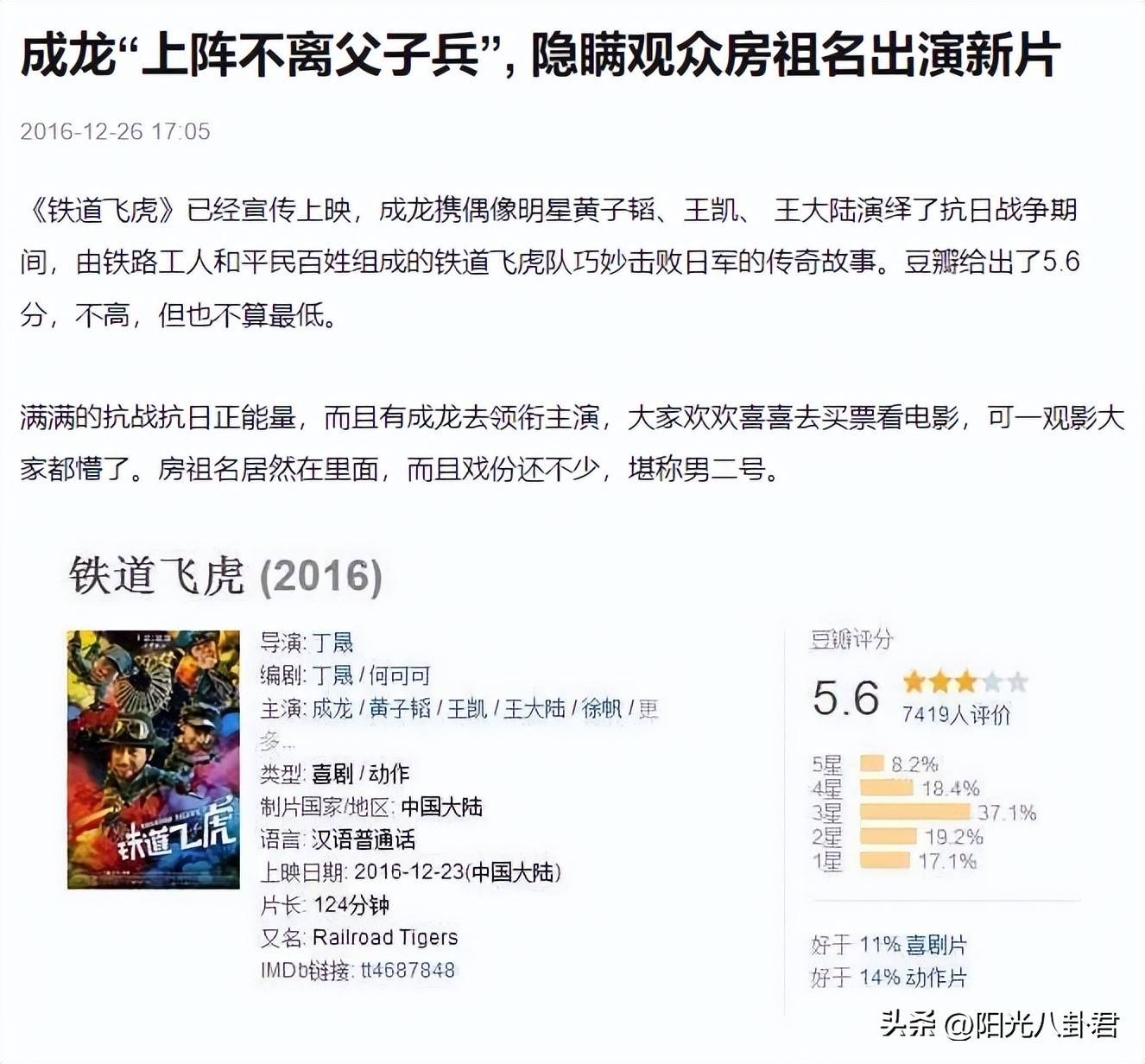 对于房祖名来说,有成龙这样一位老爸,他已经比全世界99%的人都幸福了,而对于成龙来说,摊上这样一个儿子,是他这辈子辉煌生涯中最失败的事情之一。