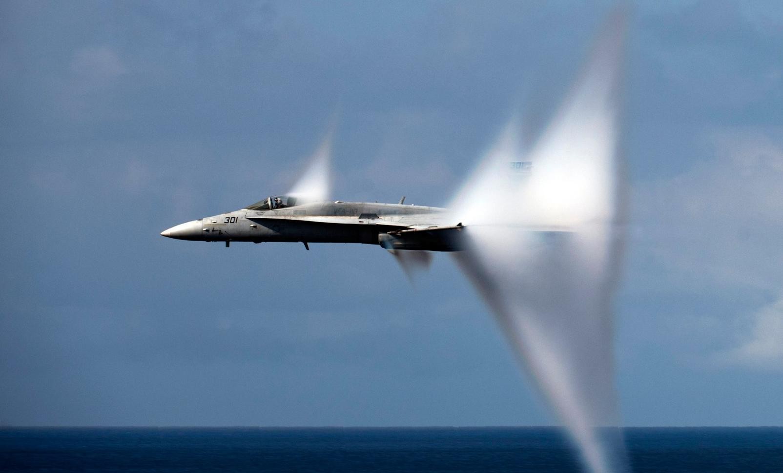 音爆的产生原理是什么?音爆是由于一种称之为“超声马赫线”的物理现象造成的。在飞行器穿过空气时,会产生膨胀的空气波,它们以音速向外传播。当飞行器飞行的速度超过了音速,空气波就会溯源而来,形成一个可见的压缩波和一个听得见的响声,即音爆。