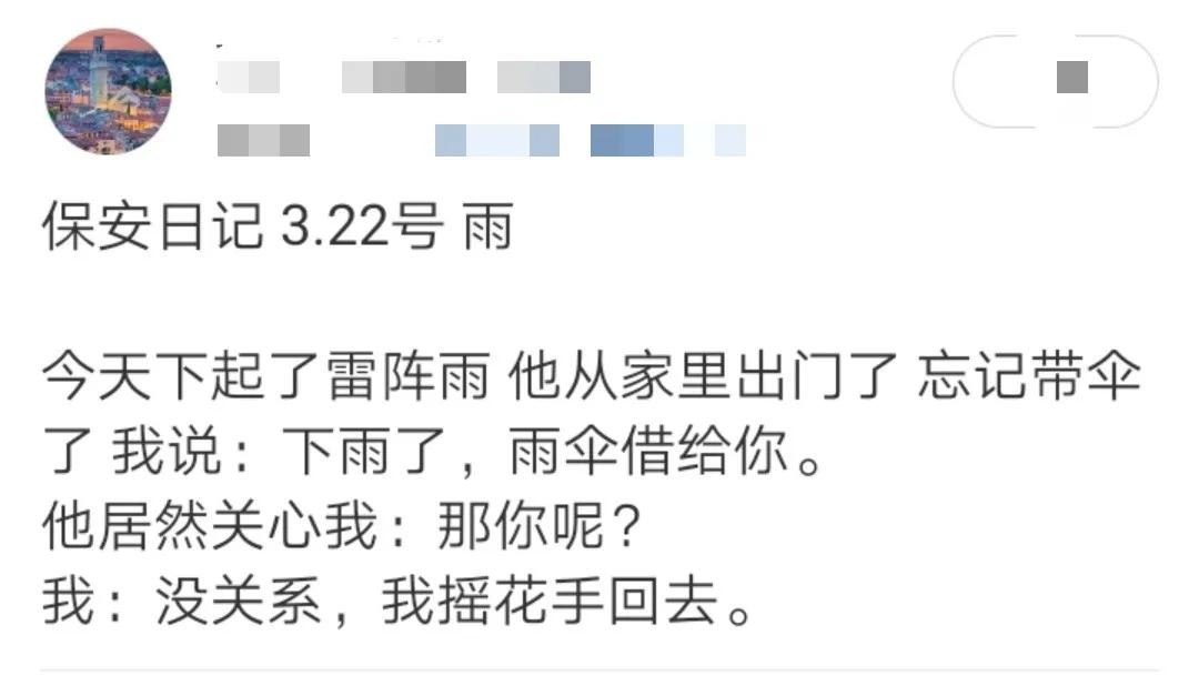 比如“保安日记体”鸡汤: