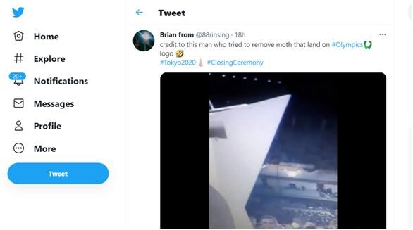 这只迅速成名的“奥运飞蛾”很快就有了多个以它命名的推特账号。随后,一段视频还出现在社交媒体上。视频中,现场工作人员尝试从主席台上拍走飞蛾的视频,而“奥运飞蛾”也搞笑回应:“他没打到我”。