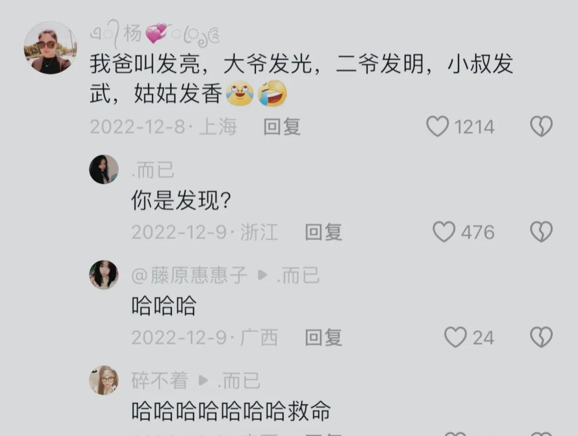 你爷爷生到后面都不敢生了,因为就认识这几个字,再生都不懂取啥名了