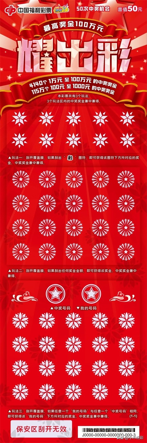 今天,小木和大家说的是福彩50元面值的《耀出彩》。