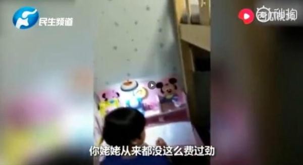 爸可能觉得太好笑了,则在一旁录下了整个过程。