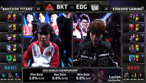 转眼到了第五年世界赛,五大赛区已经成型,LCK,LPL,LMS,EULCS以及NALCS。2015年,共有七支队伍参加了外卡预选赛。预选赛一分为二,巴西,独联体,拉美三队为一组,日本,东南亚,土耳其,大洋洲为另一组。最终,从两组中脱颖而出,获得最终资格的是巴西的PNG以及东南亚的BKT。