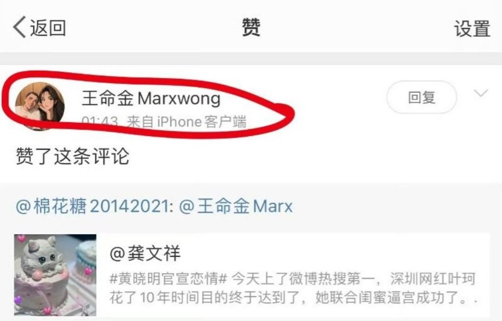 不过有眼尖的网友发现,王命金偷偷点赞了一个微博动态,而这条动态是一个叫做龚文祥的网友发布的。