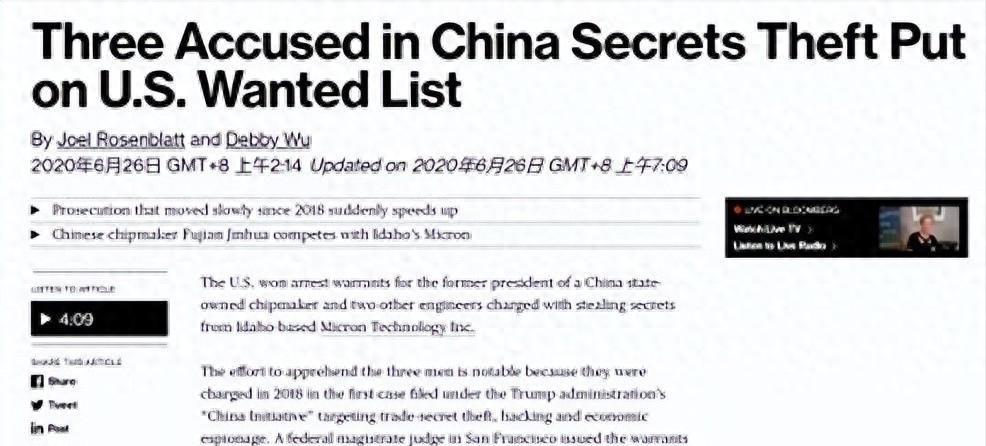 2020年,美国法院发布了一纸通缉令,目标直指三位中国芯片技术人才:福建晋华前副总裁陈正坤和两位来自台湾联华电子的工程师。