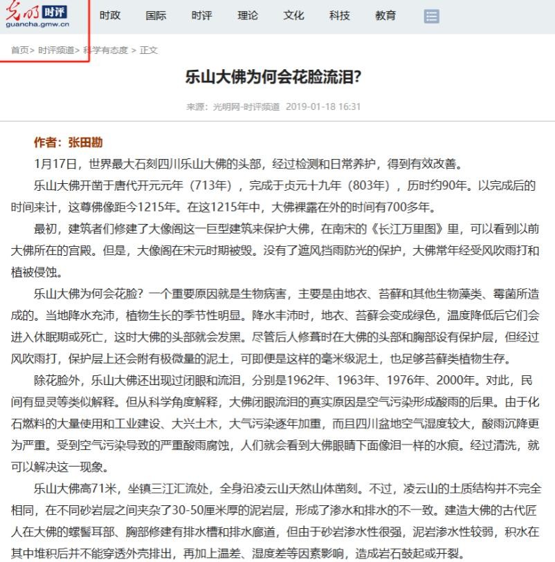 【1】《四川乐山大佛2014闭眼事件,三次显灵实则是酸雨导致》.
