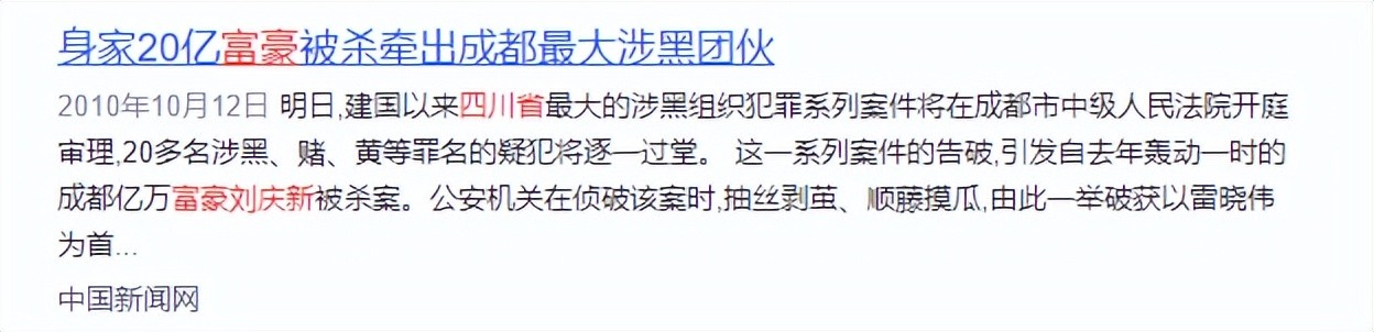 《身价20亿富豪被杀牵出成都最大涉黑团伙 》,2010年10月13日,《 重庆晚报》