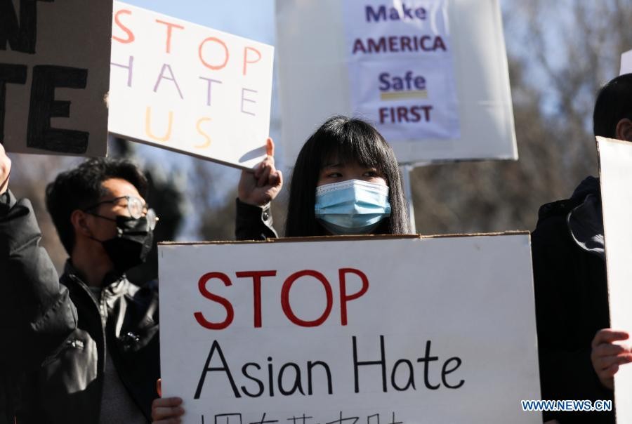 (2021年3月,美国纽约 “停止对亚裔的仇恨”游行,新华社)