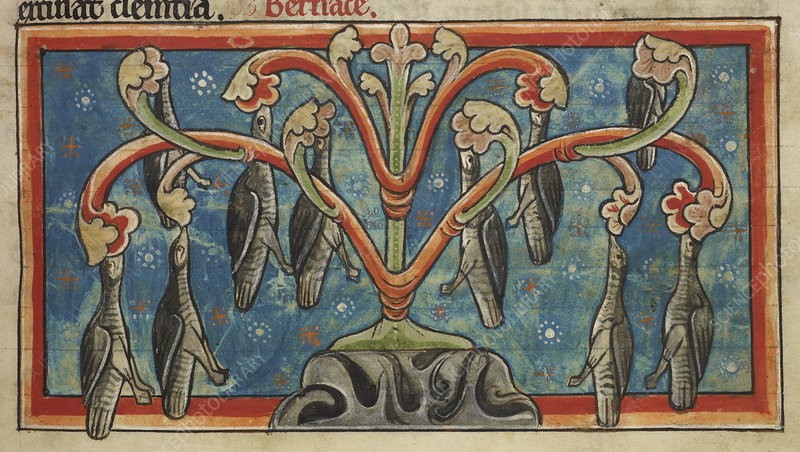 于是,藤壶鹅是一种生长在树上的鸟的观点就开始传播开来了。