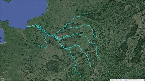 4、下塞纳河-从巴黎到鲁昂,主要支流有瓦兹河(右)、奥贝特河(右)、埃普特河(右)、安代尔河(右)、厄尔河(左)等,其中瓦兹河是塞纳河流域面积最大的支流,河长341公里,流域面积17000平方公里,流量110立方米/秒,其最大支流埃纳河河长356公里,流域面积7752平方公里,流量63立方米/秒。