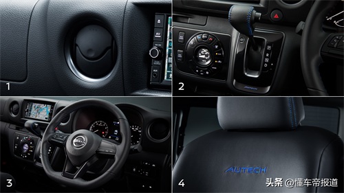 内饰方面,佳奔AUTECH在车内部分同样获得了AUTECH风格升级,主要体现在黑色人造皮革包裹的座椅、方向盘和门板,并融入AUTECH风格蓝色缝线。同时,该车还升级有哑光银空调出风口装饰,根据配置不同还可获得4扬声器音响和电动侧滑门/尾门。