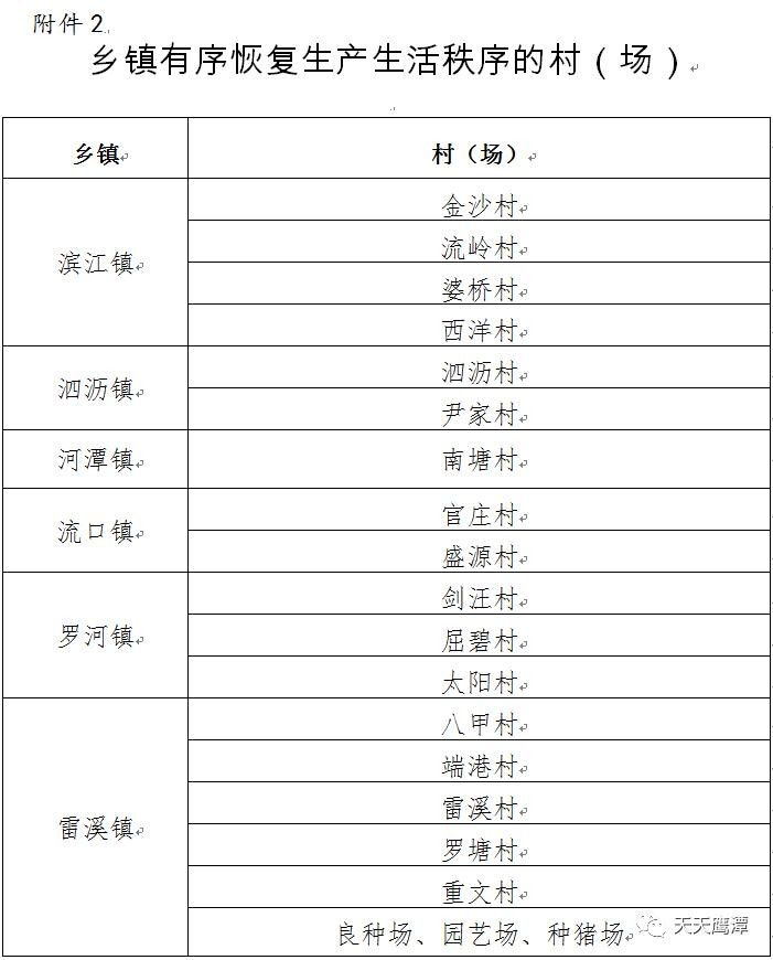 2.乡镇有序恢复生产生活秩序的村(场)