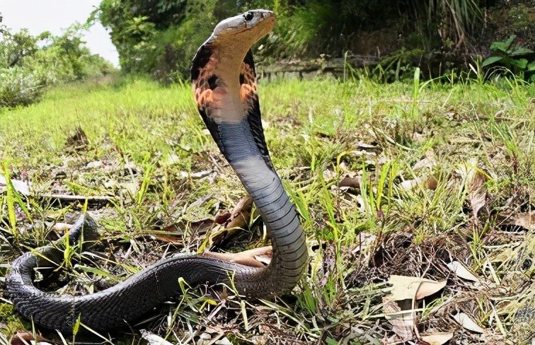 舟山眼镜蛇是中国十大毒蛇之一,但要比眼镜王蛇小得多,成熟蛇类的体长在1.5~2米之间,且拥有极为致命的毒液,而且在它们上半身立起来的时候,还会向敌人喷射毒液十分的骇人。