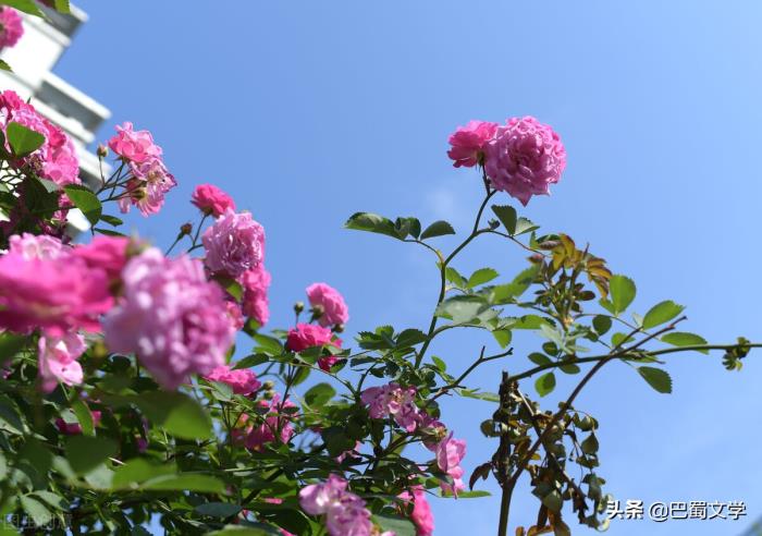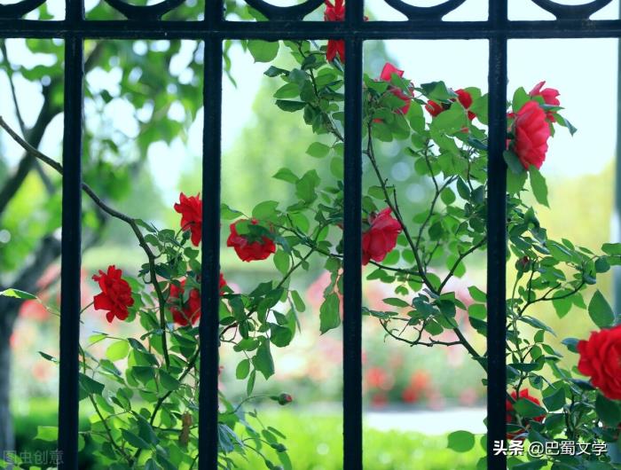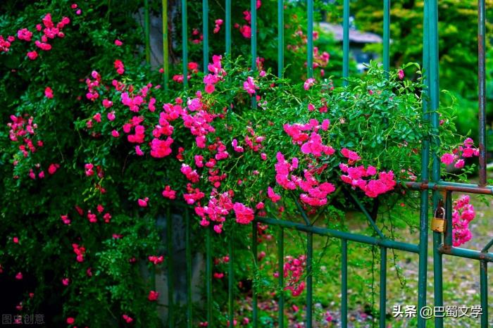 这蔷薇花墙,美丽又热烈,一年一度,欢欢喜喜地来,又轰轰烈烈地挥洒着一片片花瓣雨离开。看着它,便心生温暖,心怀阳光。