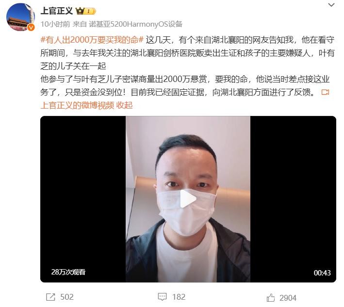 此前,网红打拐博主上官正义公开举报安徽合肥有代孕机构和公职人员在私底下搞地下取卵的勾当,还贩卖出生医学证明。该事件引发社会广泛关注。