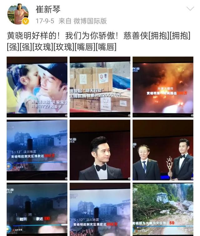 黄晓明热衷公益,当他的善行被肯定时,崔老师比谁都开心。