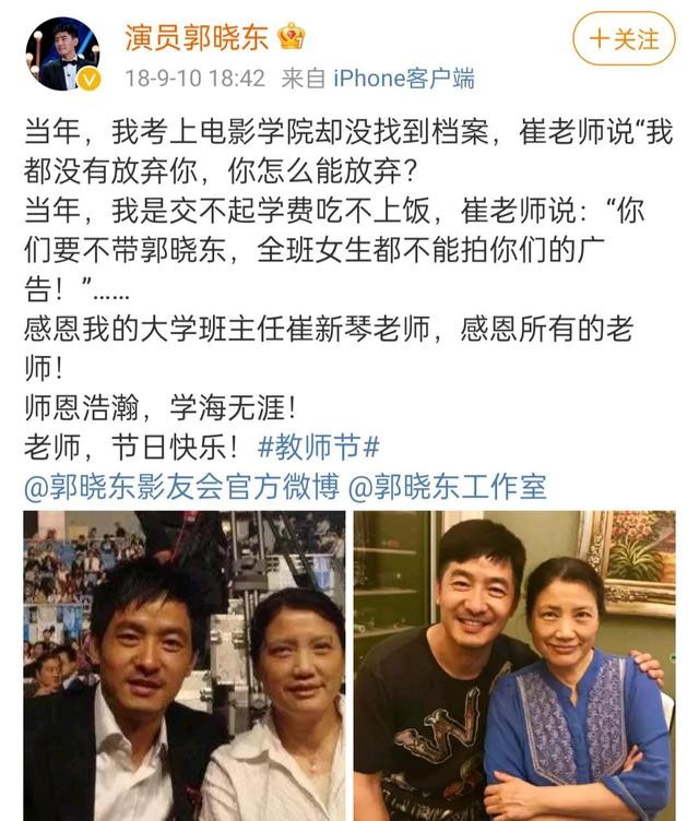 在郭晓东决定放弃时,崔新琴老师默默为他补办了各种证明,才让他有了读电影学院的机会。