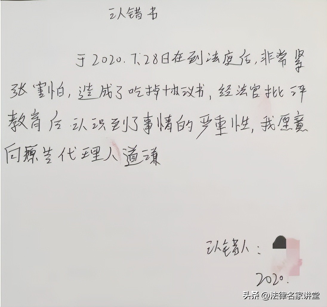 虽然杨某马上写了《认错书》,但因为杨某的行为构成妨害民事诉讼,郑州市金水区法院决定对杨某处以5千元罚款。