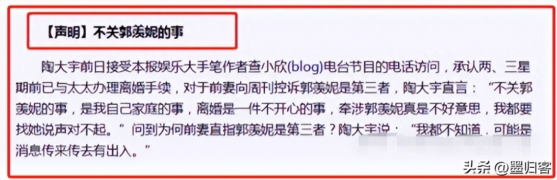 陶大宇在被曝出来和郭羡妮在一起前,他在网友的印象中一直是一个疼爱妻子的“好男人”,所以在他的恋情曝光后,网友都觉得是郭羡妮是插足者。