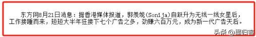 郭羡妮出道即巅峰,在《寻秦记》上映后,她一跃成为了TVB主要力捧的明星之一,她在之后出演了不少爆款好剧,成为了公司最有商业价值的女星之一。