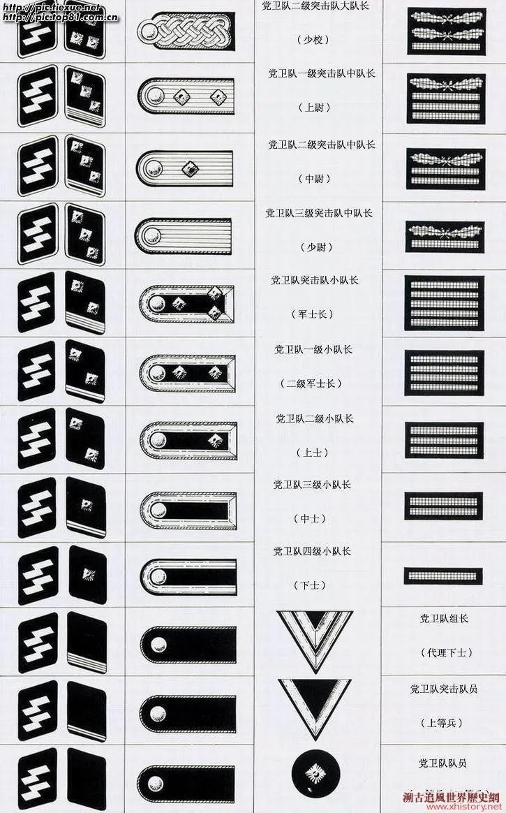 上面半部分是士官,下面这半部分就是党卫军士兵军衔了