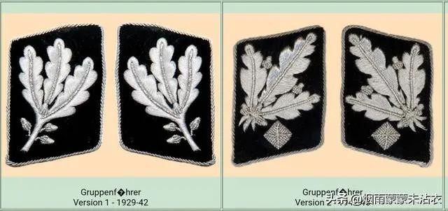 党卫队上校,旗队长,左面是1942年之前的领章,右面是1942年改动后的领章,同样看起来并无什么差别