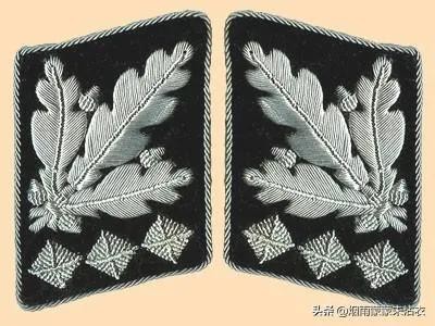 党卫队资深上校的肩章为银色编织底板,两颗军衔星