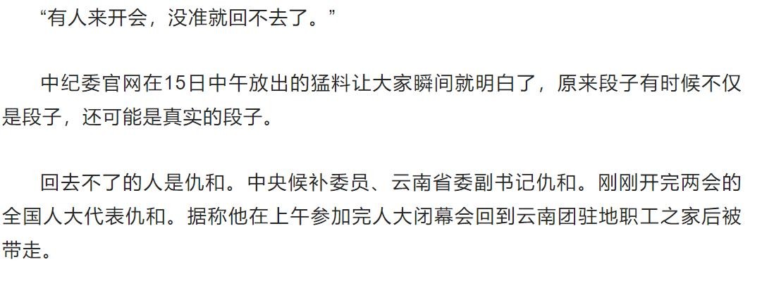 没想到,在2015年3月15日那天,总理记者会才结束了不到20分钟,仇和就带给了世人一条爆炸性消息。