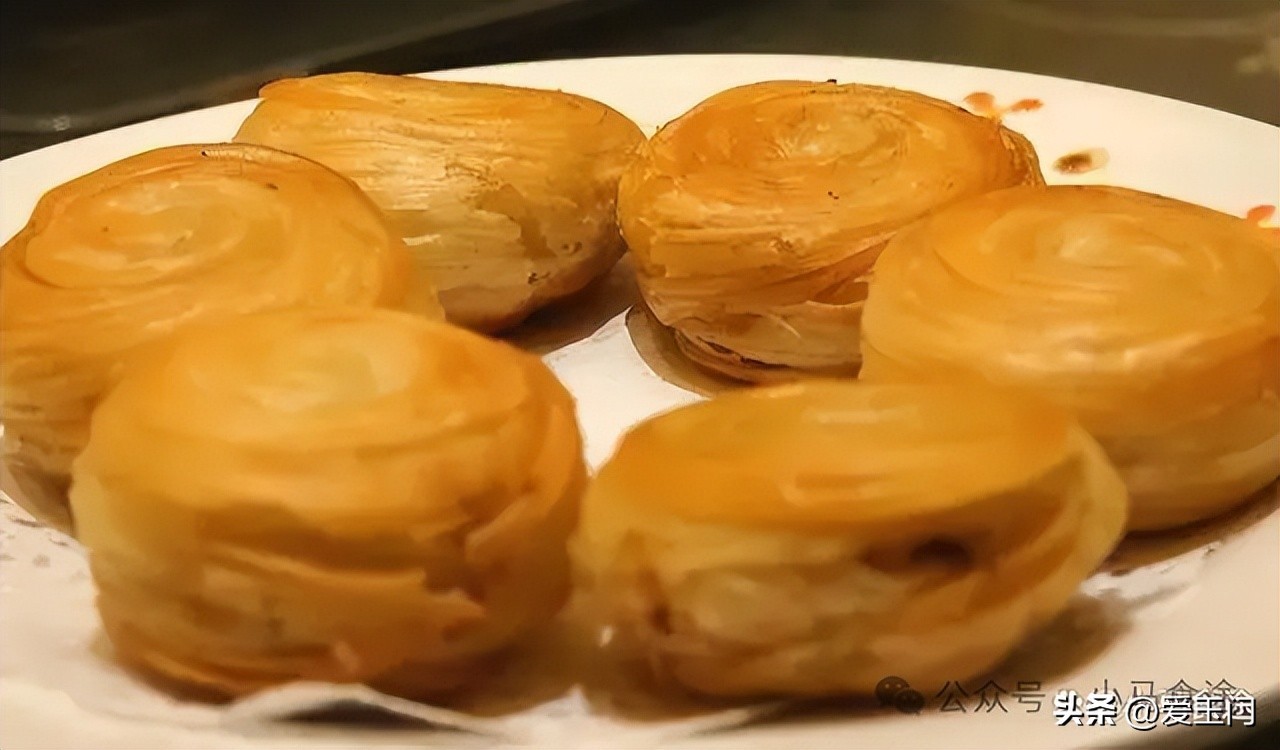 千层油酥饼的制作过程繁琐,口感酥脆,层次分明,油而不腻。制作原料包括面粉、菜籽油、食用碱、花椒、盐等,制作过程包括制酥、和面、饼胚、煎烤等。成品色泽金黄、层次鲜明、脆而不碎、油而不腻、香酥适口,西安大众喜欢的面食之一,不管是早餐还是夜市,都有人排队购买,顺便问一句,你吃过吗?