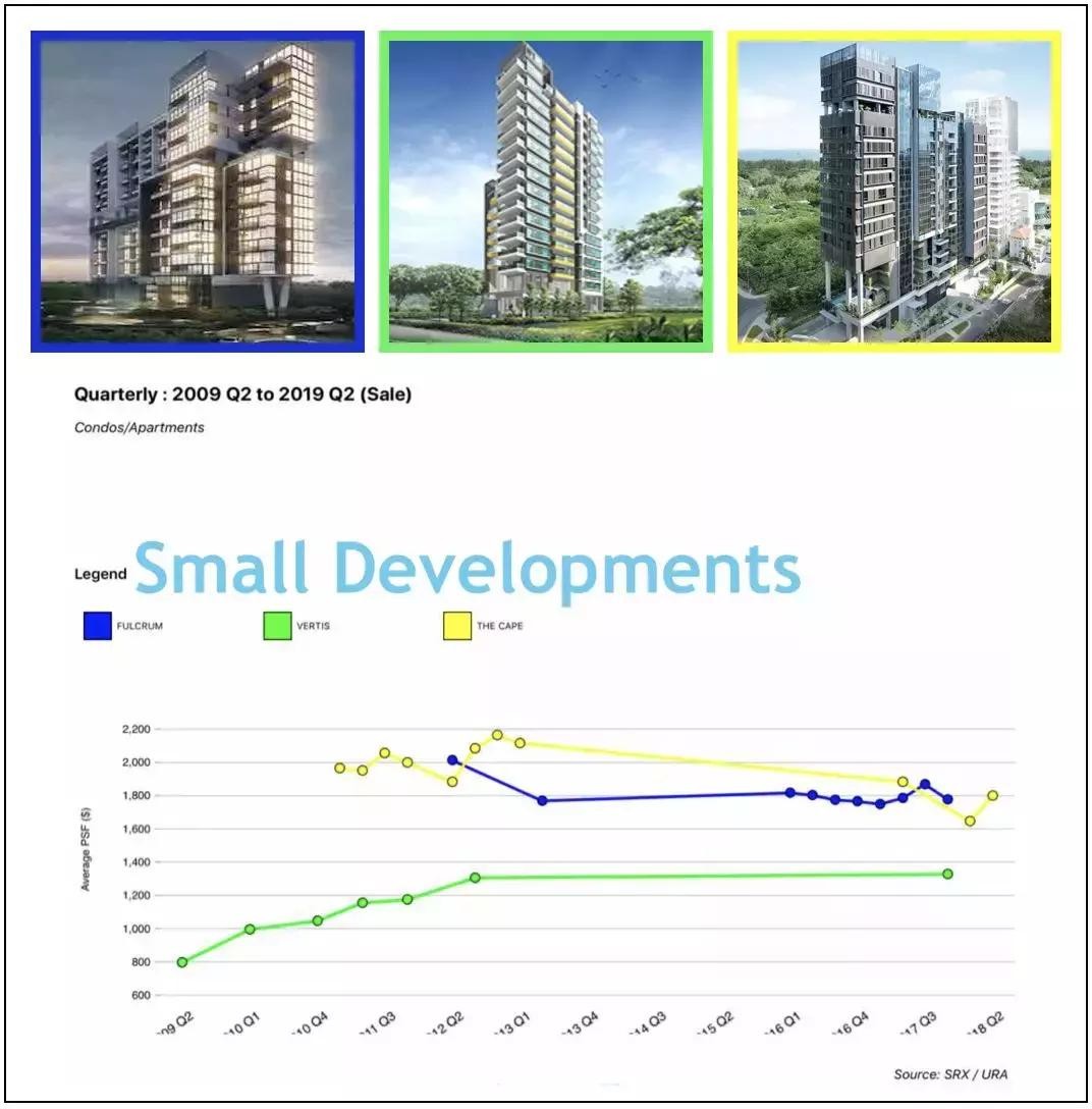 很多数据研究发现,新加坡私人公寓从开盘预售到3-4年建好后交房,价格一般会有很大的增长;反而交房后成为二手房,价格增长慢慢停滞。以下列两个项目为例: