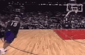 我们再来看看改变扣篮大赛的半神——卡特。那是卡特职业生涯第一个也是唯一一个扣篮大赛冠军,但他却改变了扣篮大赛。他那一年的精彩扣篮也被载入了NBA的史册。他的扣篮震惊了所有人,包括大名鼎鼎的沙奎尔·奥尼尔和凯文·加内特。