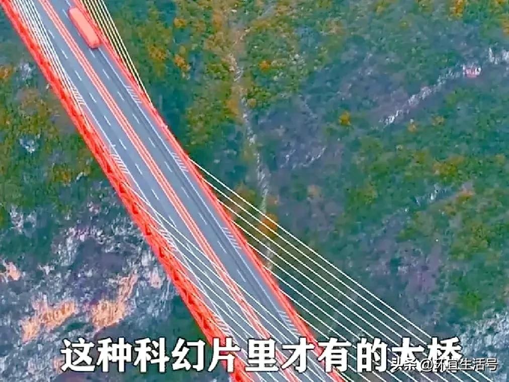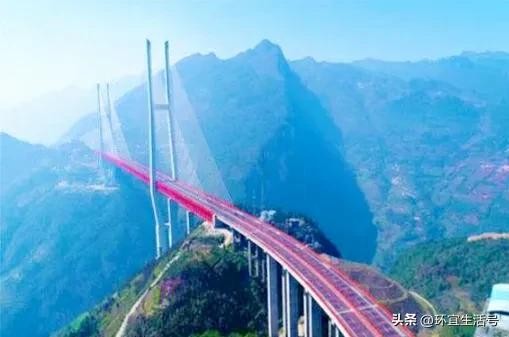中国基建狂魔的又一代表作,北盘江大桥,北起都格镇(贵州省), 上跨尼珠河大峡谷,南至腊龙村(云南省);2013年开工,2016年竣工,历时三年,耗资10.28亿元,全长1341.4米;“一桥飞架南北,天堑变通途”,大桥的建成,大大方便了两岸的居民,本来到对面要4个多小时,现在缩短到1个小时。桥面至江面距离565.4米,大约200层大楼这么高。