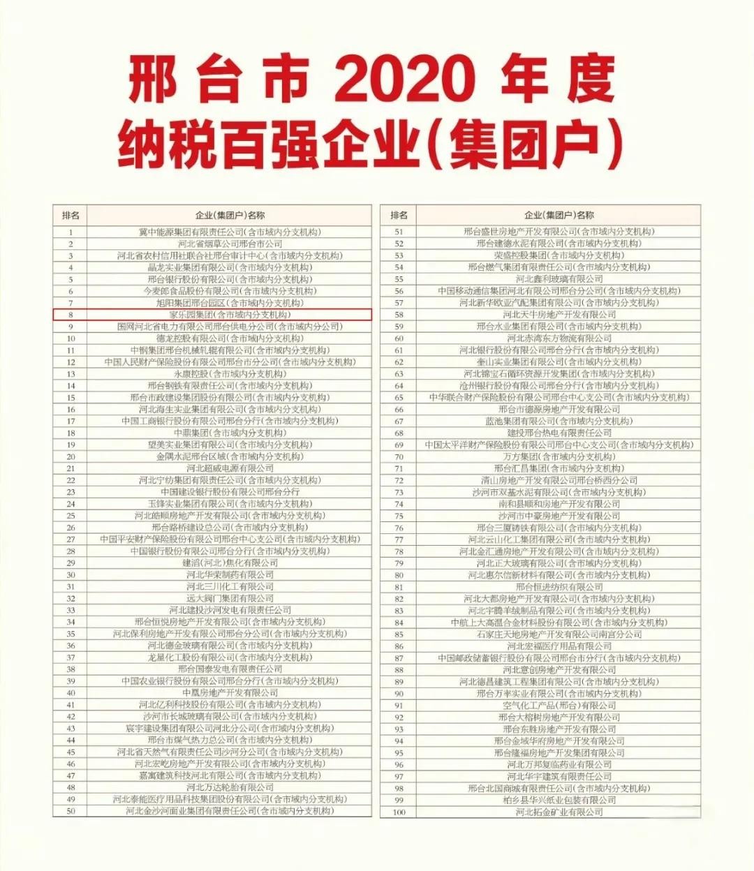 当然,家乐园也是有使命,有担当的企业。疫情期间,家乐园全力配合政府疫情防控措施,并在期间捐赠大量物资助力一线防控人员,为邢台人民做出了无私的奉献!另外,家乐园也是邢台纳税企业百强集团,位列第八位,也为邢台经济做出了应有的贡献!