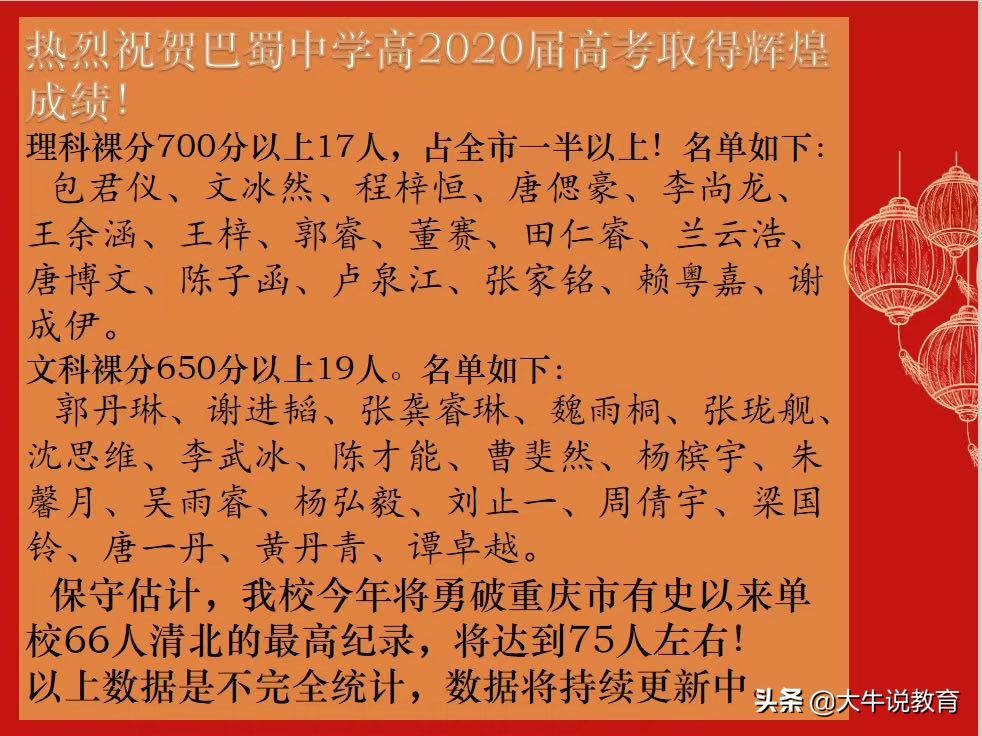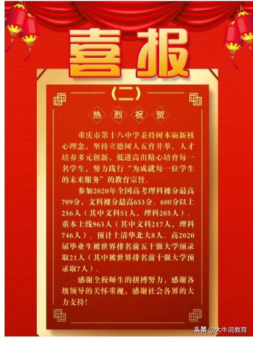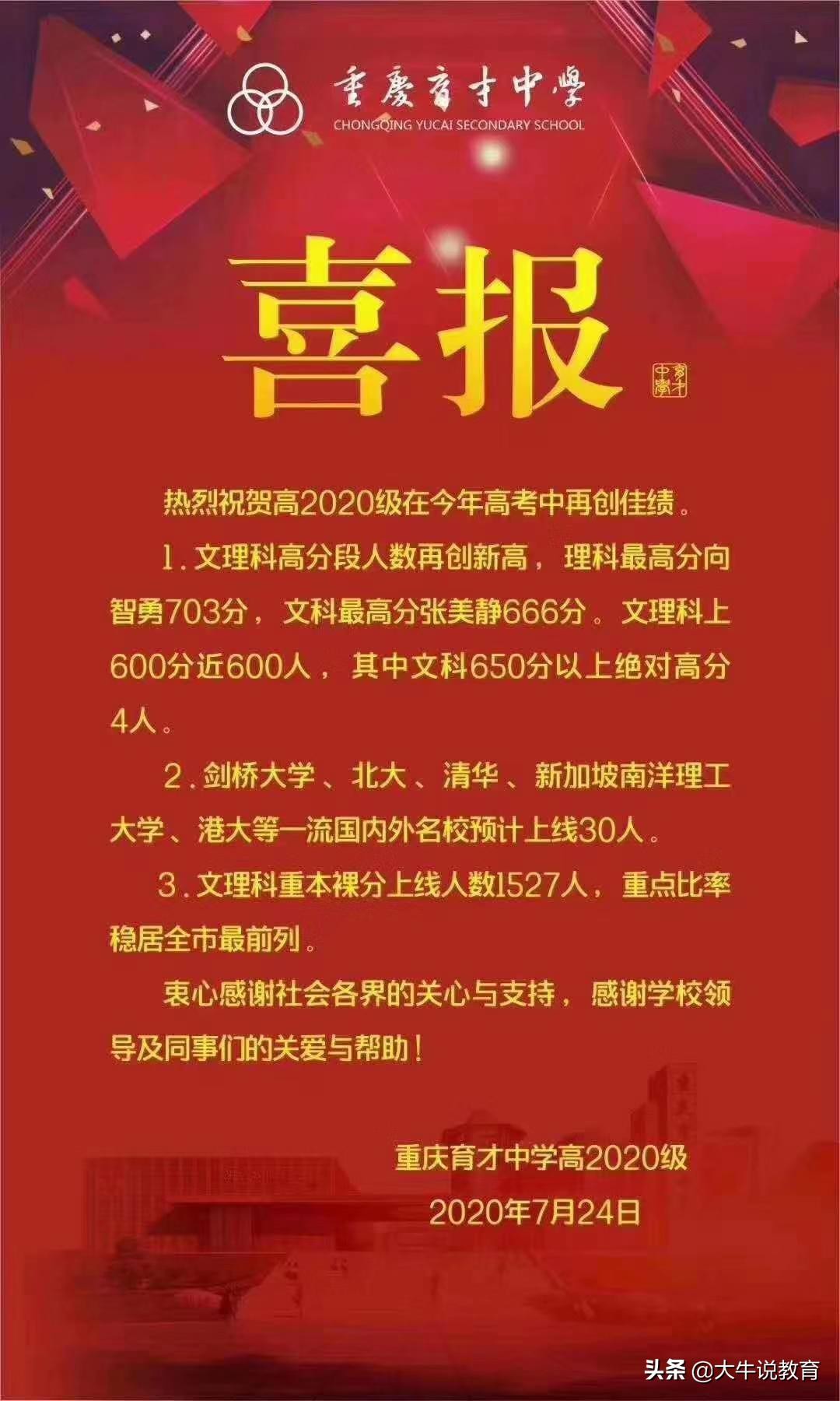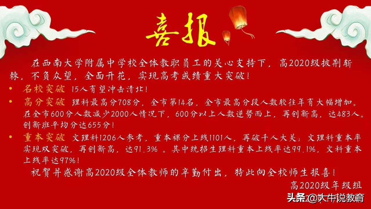 2020重庆高考状元出炉,附带部分直属学校喜报
