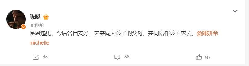 陈晓、陈妍希发布微博