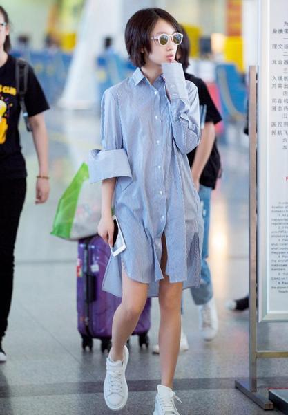 或者像周冬雨这样,直接当作衬衫裙,下半身消失,清新自然。