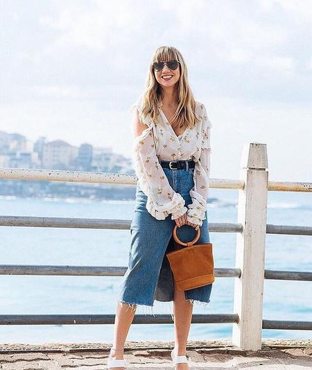 碎花衬衫自带假日风,甜美休闲,配合灯笼袖木耳花边等,如果再加上露肩等特色元素,那么摇身一变就成为时尚感十足的单品。
