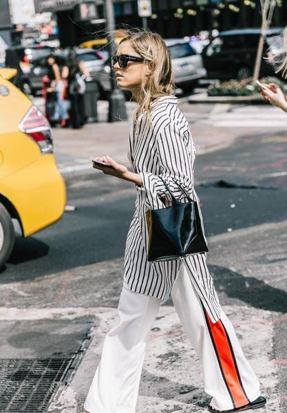 长款衬衫搭配也是很好的选择,可以选择搭配阔腿裤,记得突出腰线,衬衫可以搭配一款腰带。